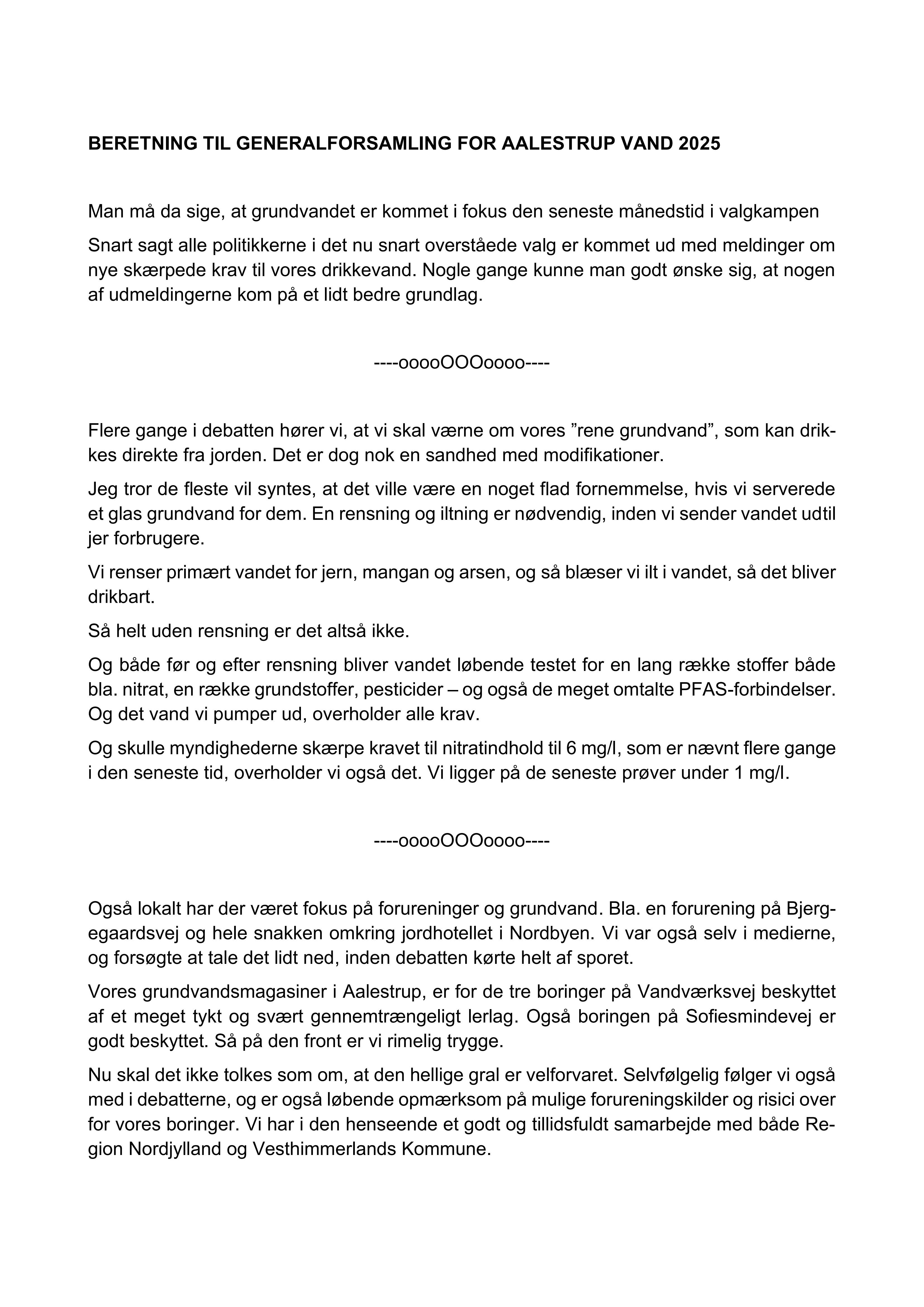 Beretning Til Generalforsamling Aalestrup Vand 2025