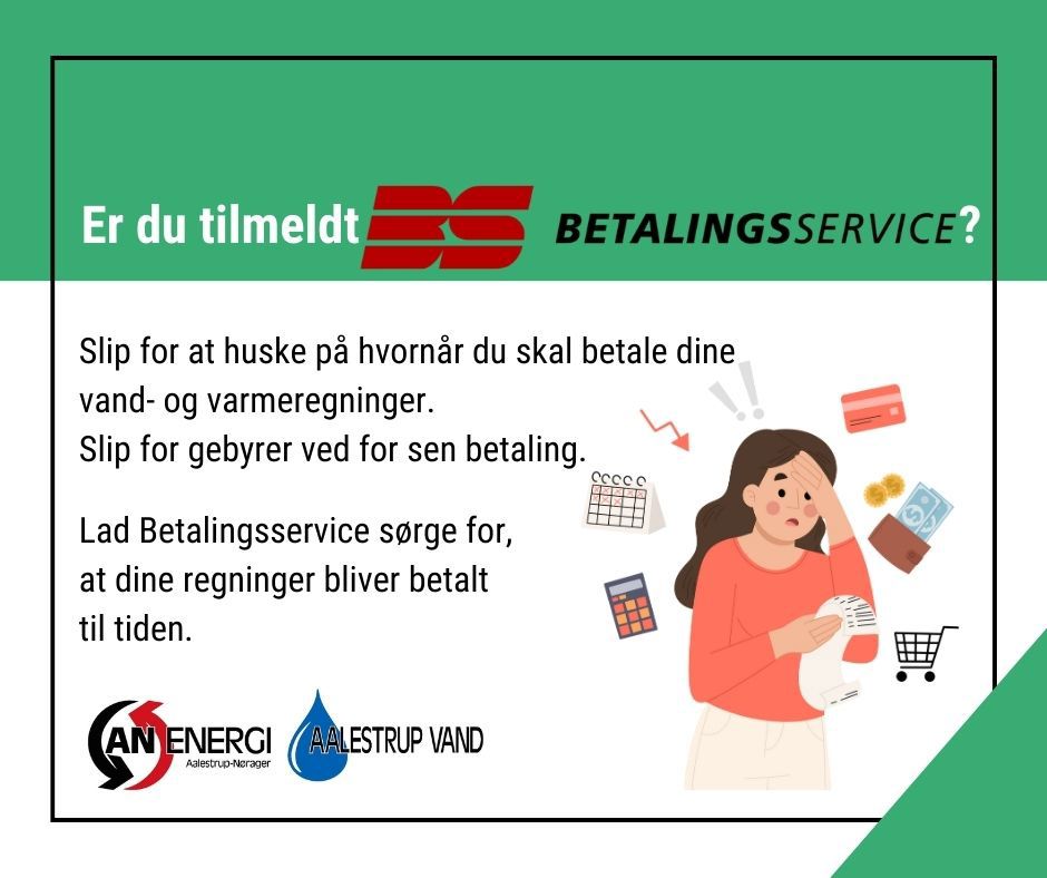 Ved at klikke på logoet her på siden kan du tilmelde din opkrævning fra Aalestrup Vand til Betalingsservice.