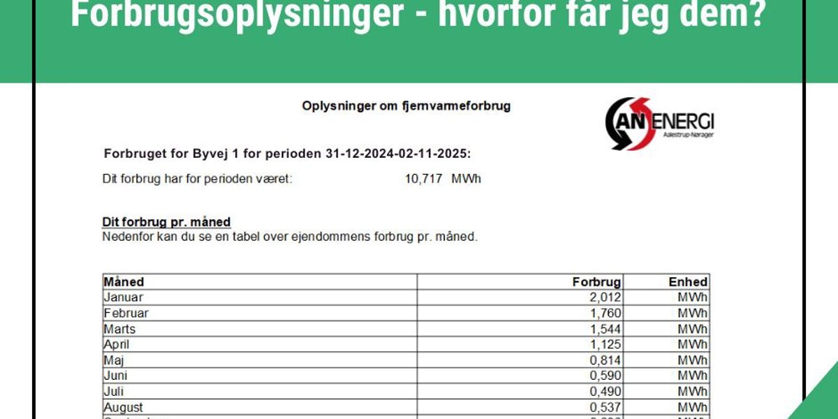 Syv gange om året – i fyringssæsonen (oktober – april) – er vi forpligtet til at sende oplysninger om fjernvarmeforbruget ud til vores forbruger...