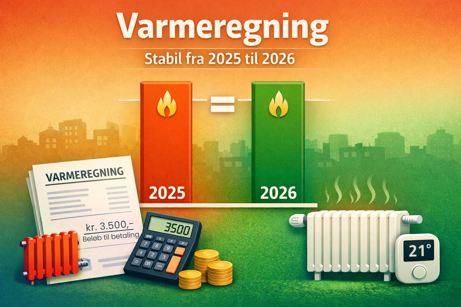 Vi vil hermed begynde 2026 med den gode nyhed, at vi fortsætter med den samme pris for varme som i 2025.