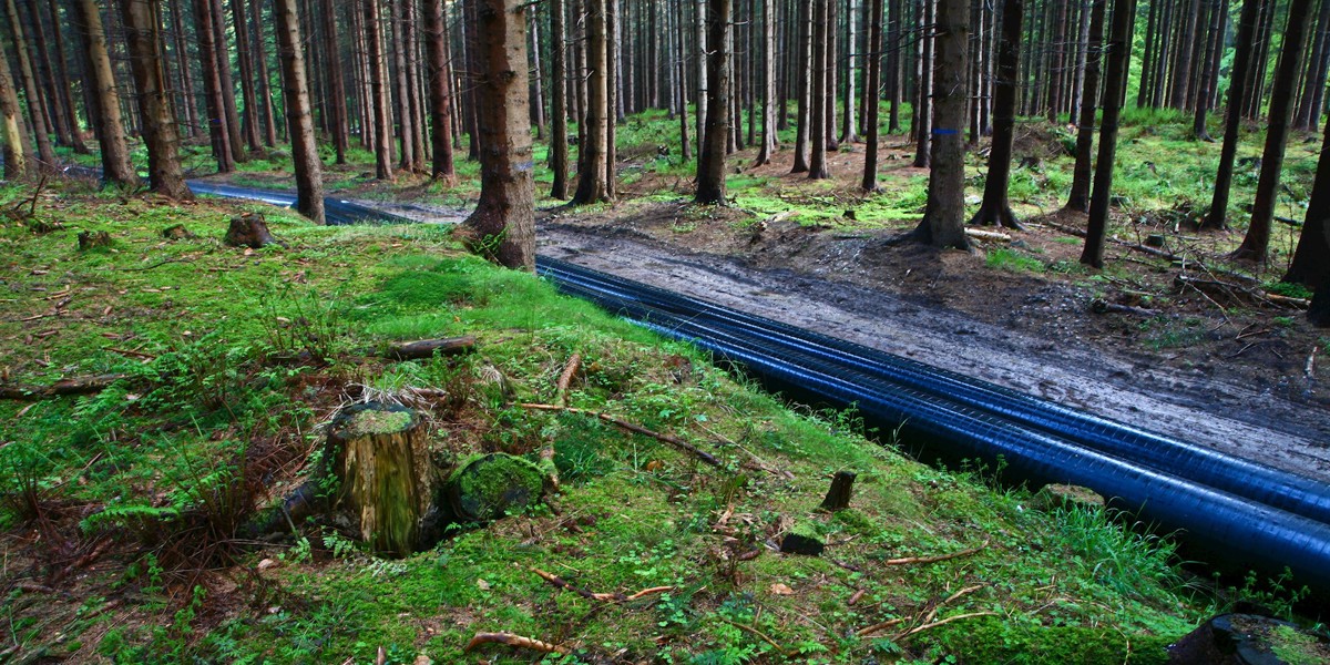 Siden da er rørene blevet svejset sammen og gravet ned...