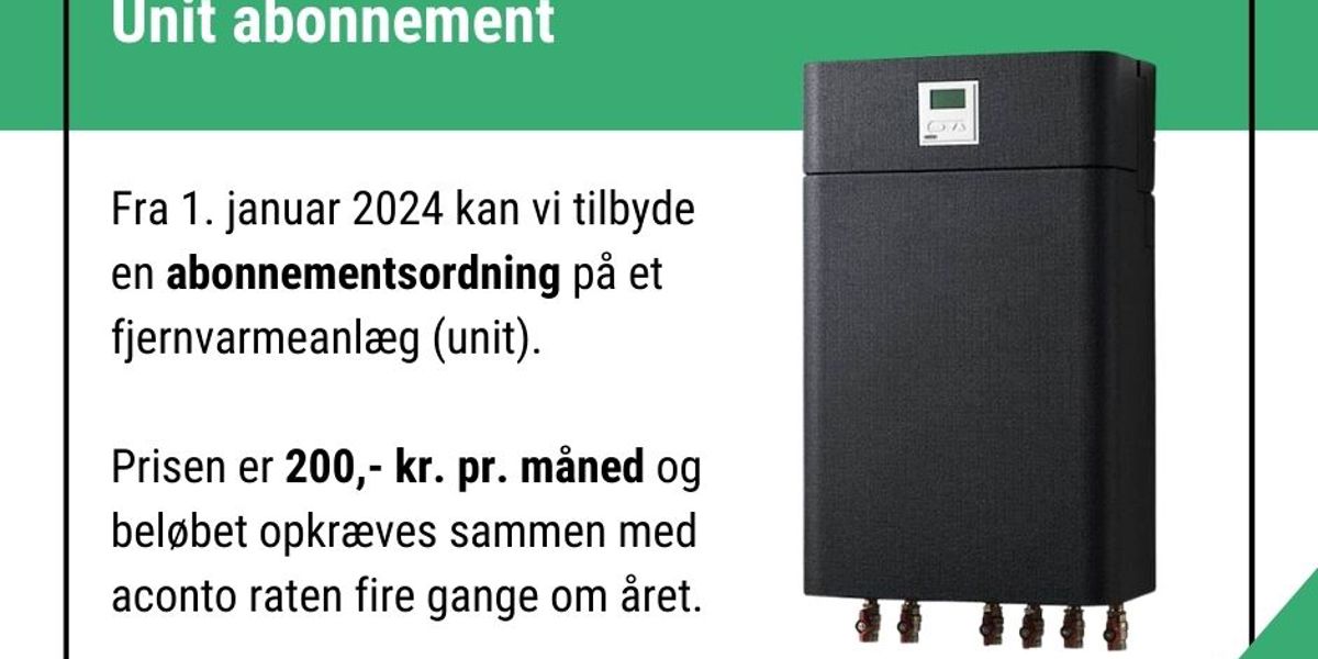 Vi kan nu tilbyde et fjernvarmeanlæg (unit) på abonnement.