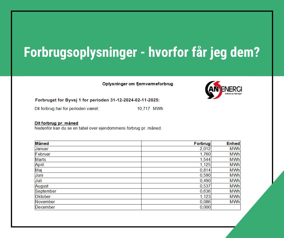 Syv gange om året – i fyringssæsonen (oktober – april) – er vi forpligtet til at sende oplysninger om fjernvarmeforbruget ud til vores forbrugere.