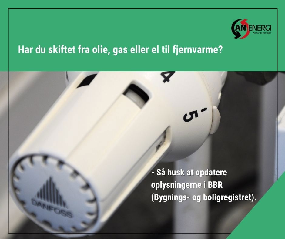 Har du skiftet fra olie, gas eller el til fjernvarme? Så husk at opdatere oplysningerne i BBR (Bygnings- og Boligregistret).