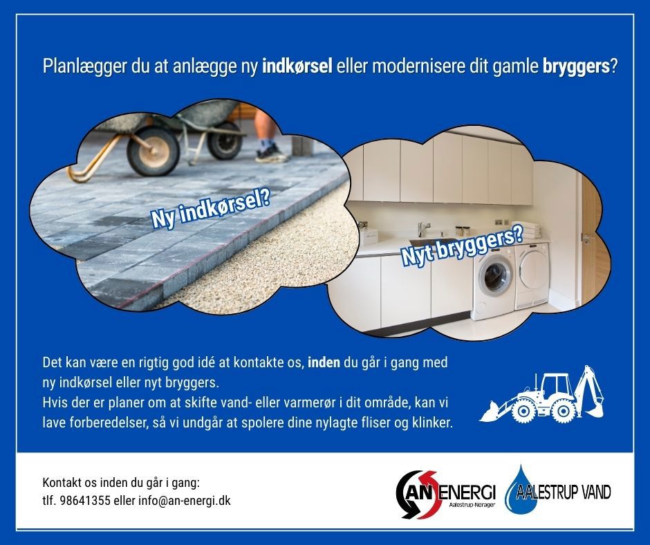 Derfor anbefaler vi, at du kontakter dit vand- og varmeværk, inden du begynder renovering af indkørsel eller bryggers. Det er både i din egen og vores interesse.