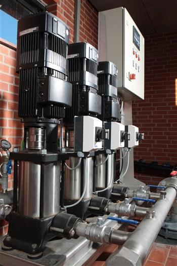 Hver pumpe kan give 16 m³ vand pr. time, og reguleres efter behov/VLT-styring.