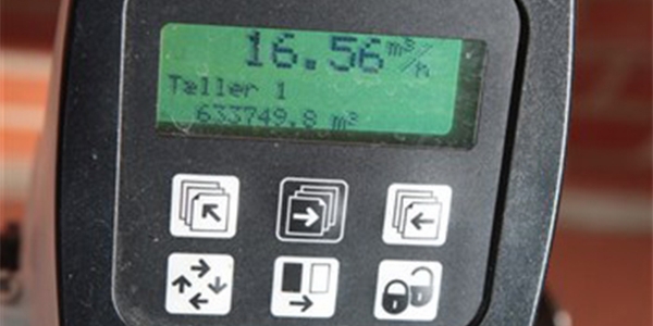 Her viser måleren, at der på dette tidspunkt er et vandforbrug på 16.560 liter pr. time.