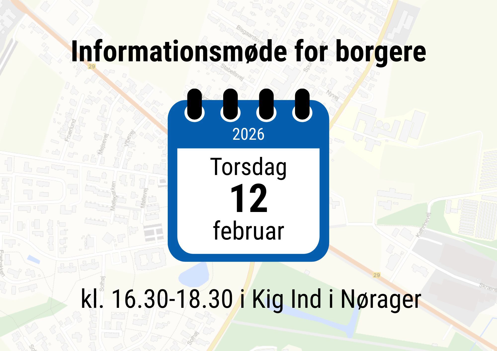 Vi afholder to informationsmøder, hvor vi vil informere om, hvordan anlægsarbejdet påvirker trafik-og adgangsforhold.